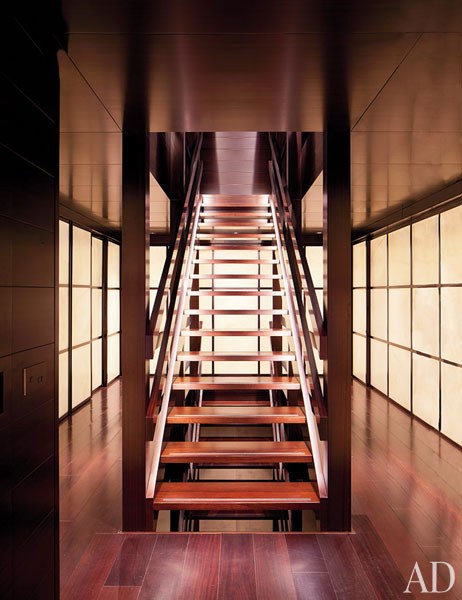 Üst kata çıkan merdiveni ve merdiven holünü beğendim. Holün tavanları, zeminleri, merdiven basamakları ve kısmi olarak duvarlarında maun kullanılmış. Duvarlarda maun karkasın aralarında ‘japon stilinde’ akrilik panelli duvarın arkasından ışık verilmiş. Ortam sıcak ve egzotik havaya bürünmüş. İnsana minimal bir ağırbaşlılık hissettiriyor.